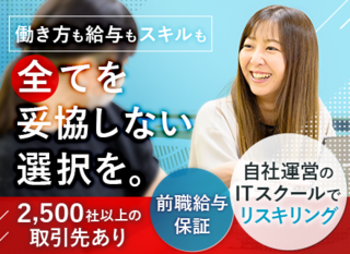 | 待遇・福利厚生 | 通勤手当、住宅手当、健康保険、厚生年金保険、雇用保険、労災保険 <各手当・制度補足> 通勤手当:上限2万円 住宅手当:規定あり/月2万円 社会保険:補足事項なし <育休取得実績> 有(育休後復帰率100%) <教育制度・資格補助補足> - <その他補足> ・スーツ廃止制度 ・チーム達成会 ・リファラル採用制 |
